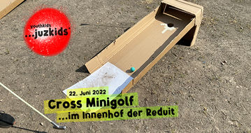 Mit den drei selbstgebauten Minigolfbahnen haben wir eine Runde Cross Minigolf