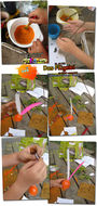 Bunte Plastikeier, Nylonschnur, Federn, kleiner, dünner Ast, digitaler Fotoapparat, workshopkids*
