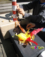 Pappkartons, Packpapier, Erdnüsse, Transparentpapier, Gummibänder, kleine Holzstäbchen, Wolle, Tonpapier, Stativ, digitaler Fotoapparat, Schnittprogramm, Sounds, Rechner, workshopkids*