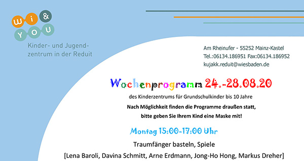 Wochenprogramm vom 24. bis 28. August 2020